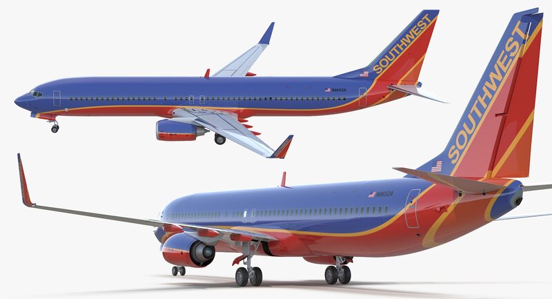 Boeing 737-900 ER Southwest Airlines is ready to be animated. You can easily position it the way you need or animate.