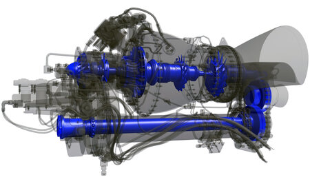 High detailed 3d model of Turbomeca Arriel 2 turboshaft engine, which powers popular military and civil helicopters.