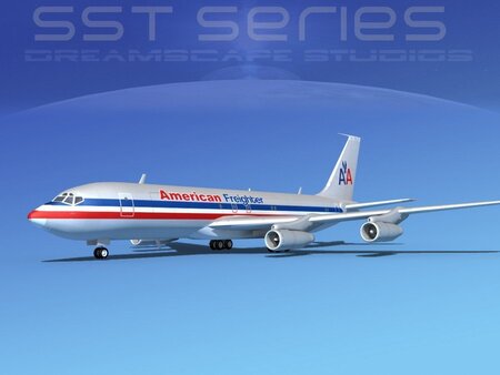 The Boeing 707 is a mid-size, long-range, narrow-body four-engine jet airliner built from 1958 to 1979. As Boeing's first jet airliner, the 707 have a capacity from 140 to 189 passengers. The 707 has been used on domestic, transcontinental and transatlantic flights, and for cargo and military applications. B 707-320 was a later version of the Boeing 707 series, which had larger wings, and more fuel capacity to operate as a true, transoceanic aircraft. It also had a large cargo door, making it a dual-purpose transport aircraft.