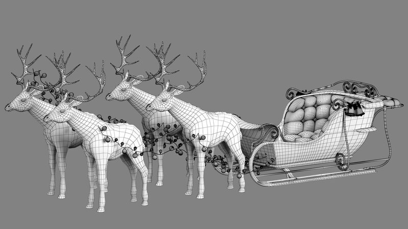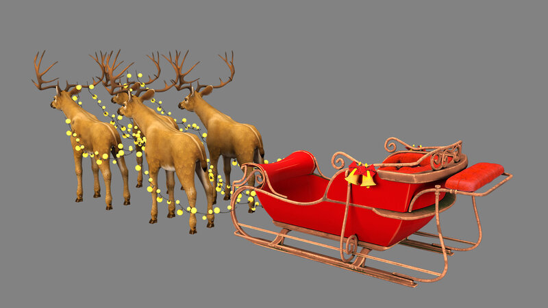 Santa deer and red sleigh