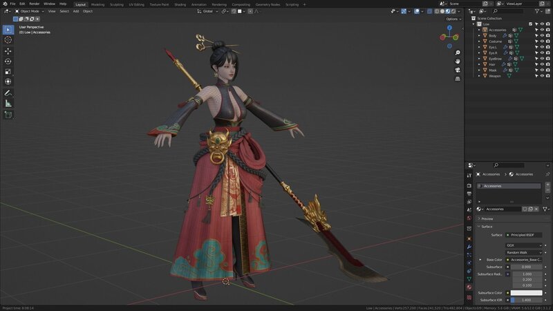 Rigged Female Model with Facial Blend shapes Low-poly 3D model