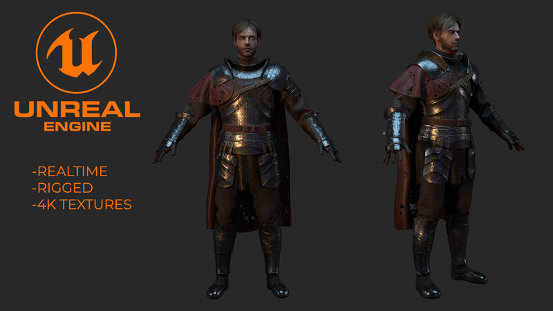 Red Knight PBR gameready rigged character Low-poly 3D model
