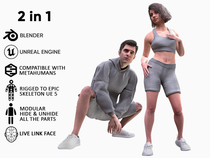 Mens and Womens Sport Suits - Modular - Rigged 3D Model Collection