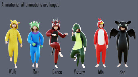 cartoon characters 3 08 Kigurumi Low-poly 3D model