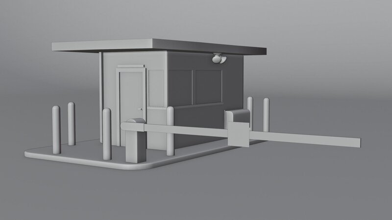 This Guard shack is a perfect addition to any military base, commercial building, or as as a toll booth. The mesh has an empty textured interior with doors that can be opened. The mesh is viewable from all angles and distances.