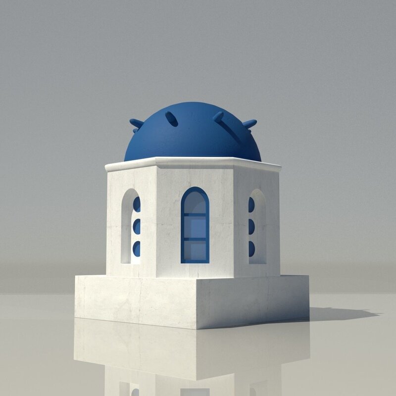 Santorini Blue and White Greek 3D Buildings x 7 Models Low-poly 3D model