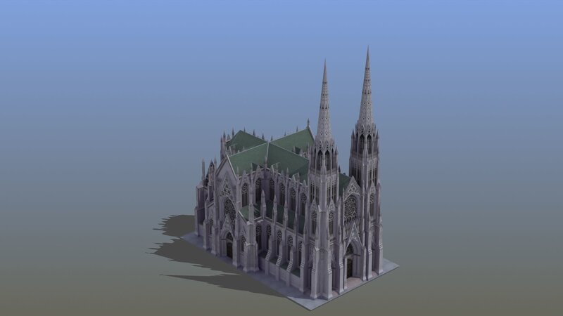 Saint Patricks Cathedral New York City model. Great multipurpose 3D model (ideal for offline rendering or real time uses such as games or simulation).