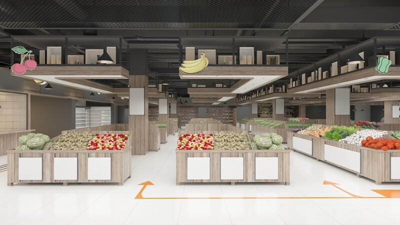 Grocery supermarket design. Various decorative items.