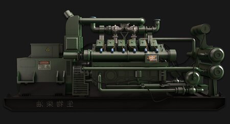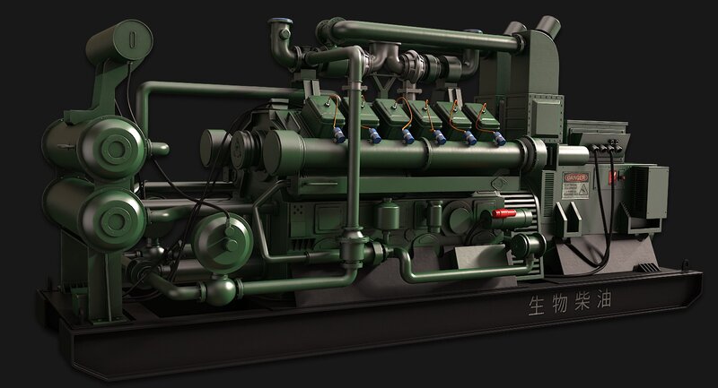 The Chinese text on the skid translates to "Bio-Diesel Generator". If this feature is unwanted or unneeded, the file also comes with additional clean versions of the skid texture featuring no text.