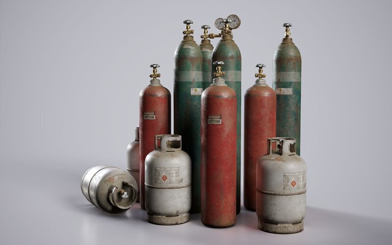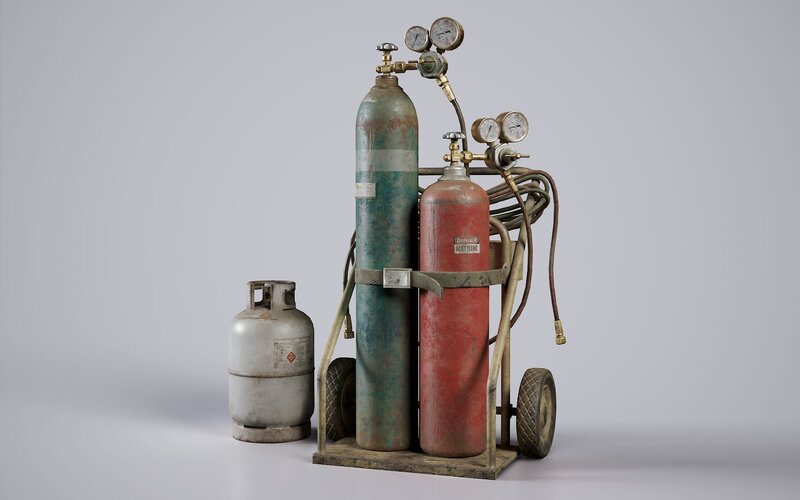 Welder Cart & Gas Canisters - game ready assets. The props have a real size (in cm).