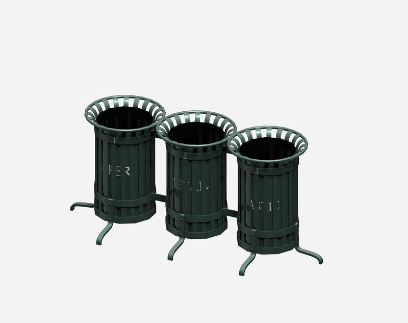Triple cage type open blue street garbage bin Low-poly 3D model