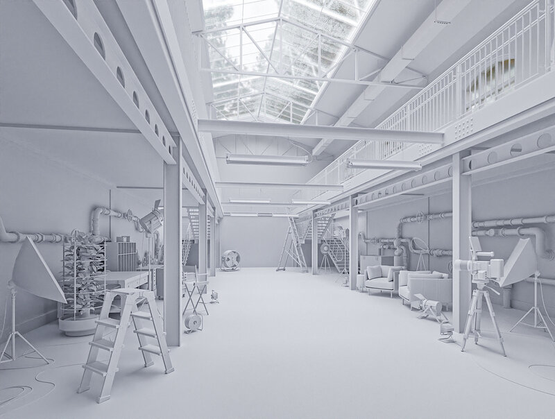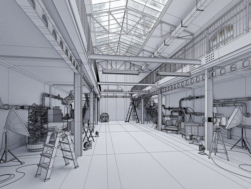 Hangar Building with STUDIO SET Low-poly 3D model
