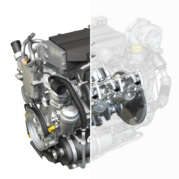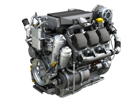 Diesel turbo engine with 6 cylinders and inner workings.