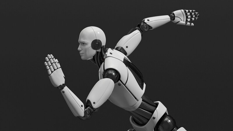 Advanced Male Humanoid Robot Running Pose is a 3D model of humanoid male cyborg, which is designed and manufactured to resemble a human male in appearance and movements.