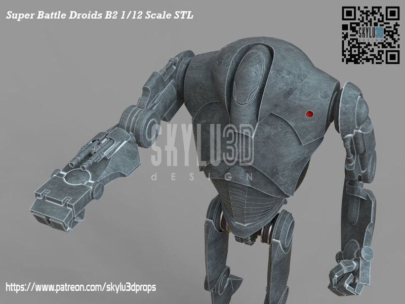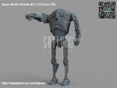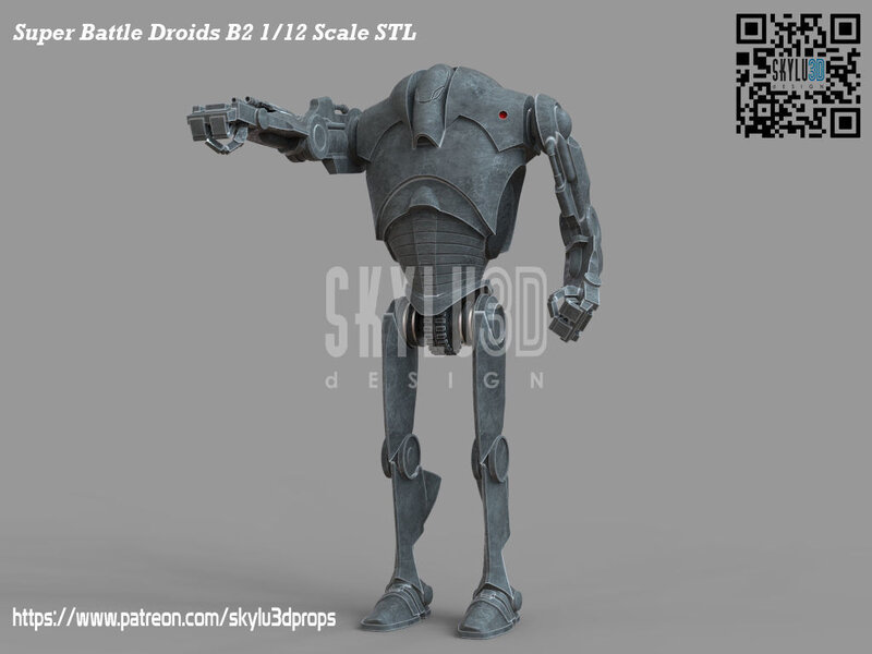 This is the B2 Super Battle Droid 1/12 scale figure that fit the black series line, test printed with good enough tolerance to the articulations for posing. Interchangeable hands and rocket arm upgrade/pre-supported Chitubox Files included for the ease of slice to print!