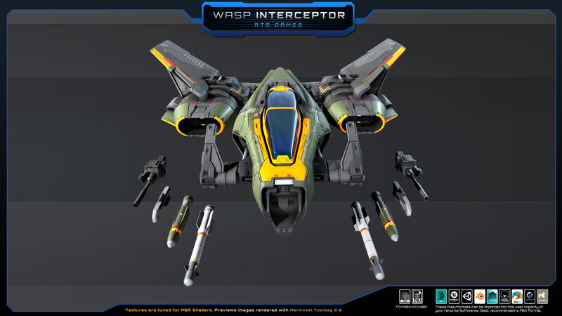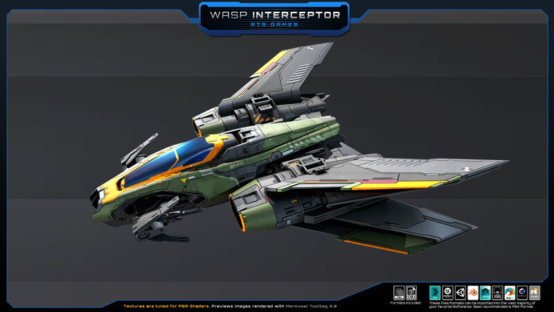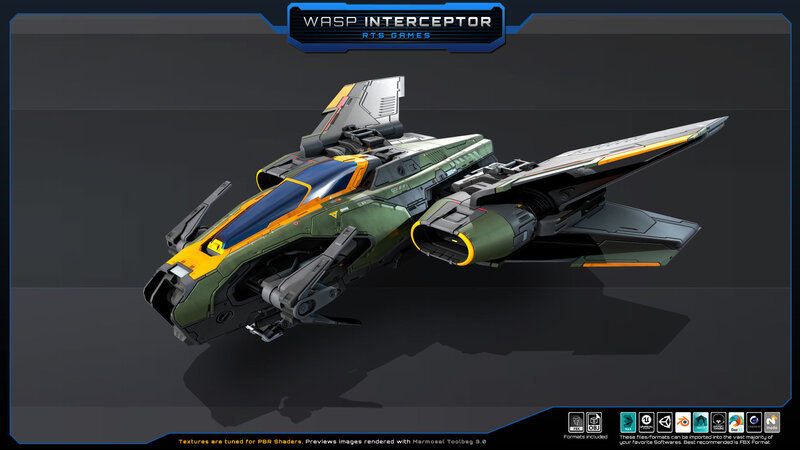 SF - Wasp Interceptor, Set of one SciFi Spaceship. No animated parts, LOD or FX.