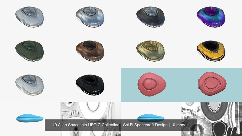 10 Alien Spaceship UFO C Collection - Sci Fi Spacecraft Design