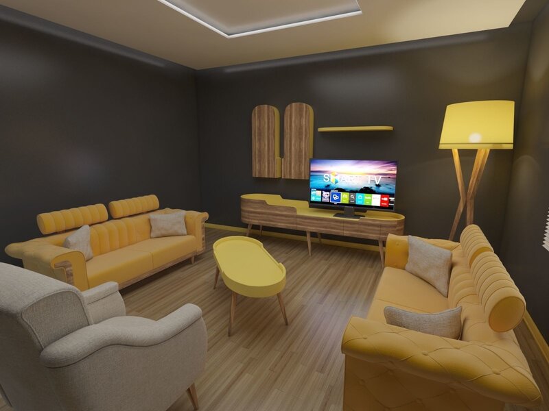 Vintage salon. Room contains, furniture, sofa, tv unit etc.